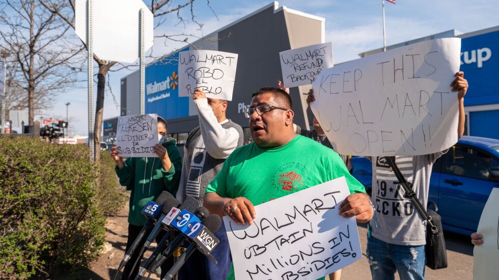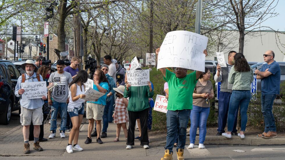 About a dozen protestors gathered Friday afternoon outside of a Walmart in Little Village set to be shut down this weekend, joining outcry from around the city as Walmart also shutters three other stores.