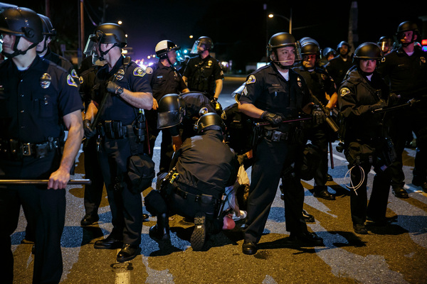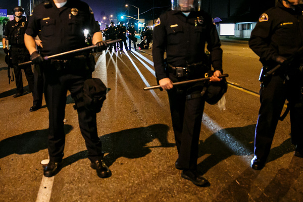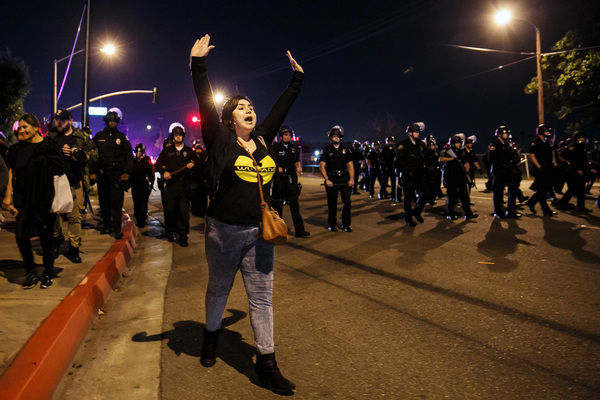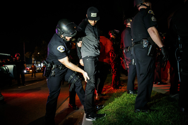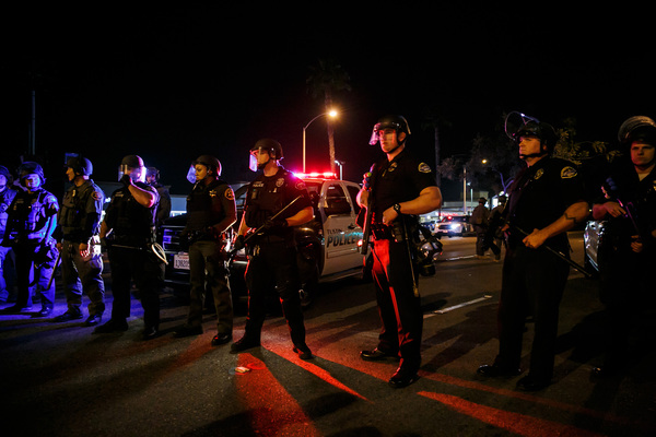 Anaheim police, who were on tactical alert, set up a protest line near Ball Road and Euclid Street to try to contain the crowd.