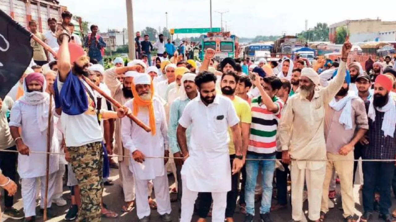 KARNAL: Farmers on Monday blocked several roads, including National Highway-44 and Karnal-Yamunanagar road, outside various grains markets in Karnal district in protest against the delay in paddy procurement. They also demanded relaxation in the moisture content of paddy.