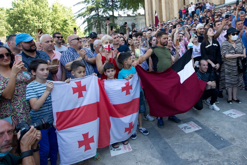 Zurabishvili condemned the violence, but Garibashvili alleged the march was organized by “radical opposition” forces that he claimed were led by exiled former President Mikheil Saakashvili