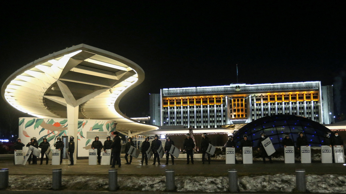 "Calls to attack government and military offices are absolutely illegal," Tokayev said in a video address a few hours earlier. "The government will not fall, but we want mutual trust and dialogue rather than conflict."