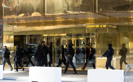 The tower, which brandishes the former president’s name in gold writing, attracted protests throughout the four years of Mr Trump’s time at the White House.