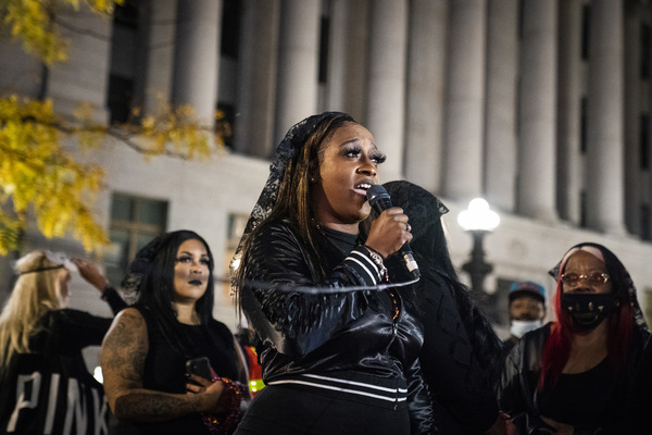Families of those killed by police march with hundreds of supporters in "The Secret March" down University Avenue to the Capitol in St. Paul, Minnesota, on Thursday, Oct. 8, 2020. There they dropped several effigies and coffins, along with a list of demands, as law enforcement takes up postion on the Capitol steps. (Leila Navidi/Minneapolis Star Tribune/TNS)Cortez Rice is brought to tears as he calles for justice on Thursday, Oct. 8, 2020, during a protest outside the Hennepin County Government Center in Minneapolis, a day after the release of former Minneapolis Police Officer Derek Chauvin, charged with the murder of George Floyd. (Aaron Lavinsky/Minneapolis Star Tribune/TNS)Toshira Garraway, who's sons father Justin Teigen was killed after an encounter with St. Paul Police, participates in "The Secret March" in St. Paul, Minnesota, on Thursday, Oct. 8, 2020, a day after the release of former Minneapolis Police Officer Derek Chauvin, charged with the murder of George Floyd. (Leila Navidi/Minneapolis Star Tribune/TNS)A proteter listens to speakers on Thursday, Oct. 8, 2020, outside the Hennepin County Government Center in Minneapolis, a day after the release of former Minneapolis Police Officer Derek Chauvin, charged with the murder of George Floyd. (Aaron Lavinsky/Minneapolis Star Tribune/TNS)Royce White stands by the speakers, those who have lost loved ones to the police, during "The Secret March" in St. Paul, Minnesota, on Thursday, Oct. 8, 2020, a day after the release of former Minneapolis Police Officer Derek Chauvin, charged with the murder of George Floyd. (Leila Navidi/Minneapolis Star Tribune/TNS)Diamond Reynolds, former fiance of Philando Castile, speaks during "The Secret March" at the Capitol in St. Paul, Minnesota, on Thursday, Oct., 8, 2020, a day after the release of former Minneapolis Police Officer Derek Chauvin, charged with the murder of George Floyd. (Leila Navidi/Minneapolis Star Tribune/TNS)Asecond night of protests outside the Hennepin County Government Center in Minneapolis on Thursday, Oct. 8, 2020, a day after the release of former Minneapolis Police Officer Derek Chauvin, charged with the murder of George Floyd. (Jeff Wheeler/Minneapolis Star Tribune/TNS)
