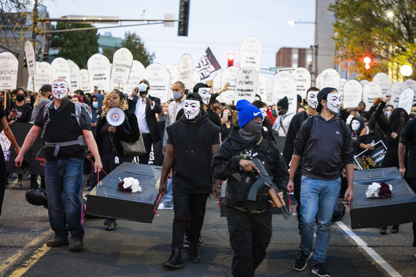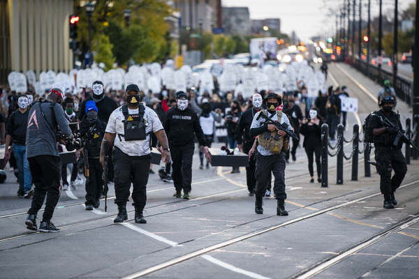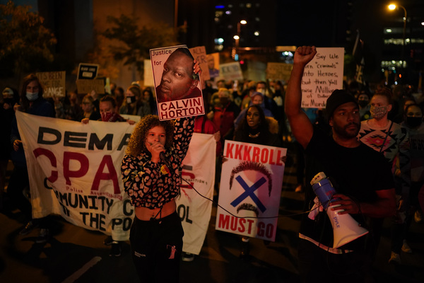 Families of those killed by police march with hundreds of supporters in "The Secret March" down University Avenue to the Capitol in St. Paul, Minnesota, on Thursday, Oct., 8, 2020, a day after the release of former Minneapolis Police Officer Derek Chauvin, charged with the murder of George Floyd. (Leila Navidi/Minneapolis Star Tribune/TNS)