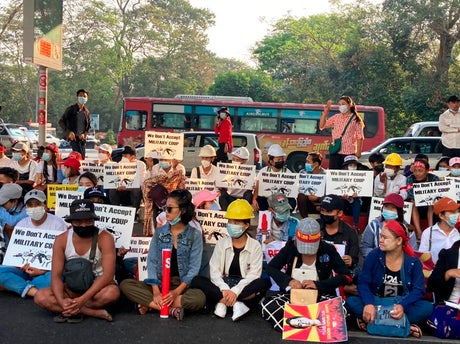 The junta prevented Parliament from convening Feb. 1, claiming the elections last November, won by Aung San Suu Kyi's party in a landslide, were tainted by fraud. The election commission that affirmed the victory has since been replaced by the junta, which says a new election will be held in a year’s time.