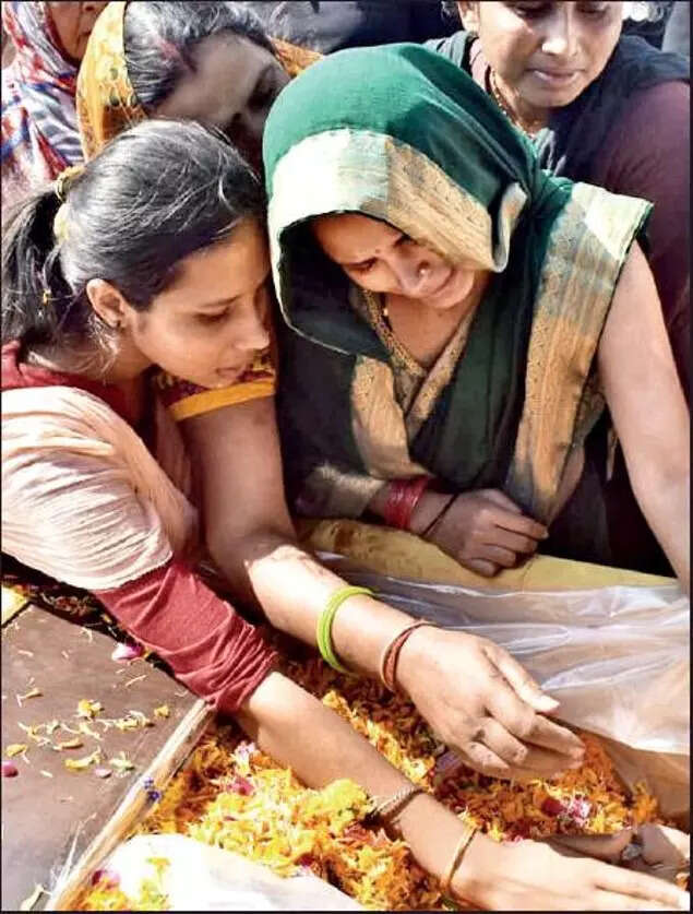 BHOPAL: Ten thousand voices shouted ‘Bharat Mata ki Jai’ as Armyman Karnveer Singh’s mortal remains were cremated at his native village, Daldal, in Madhya Pradesh’s Satna district. Karnveer, of the Rajput Regiment, was martyred battling terrorists in Cheerbagh area of Shopian district in Jammu and Kashmir on October 20.