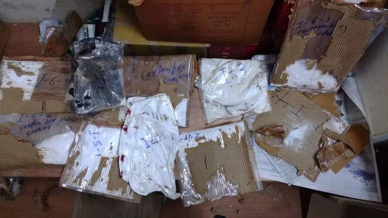 “The boxes with clothes had hidden inner layers containing plastic packets filled with a white-coloured substance which a lab test ascertained as pseudoephedrine,” the officer added.