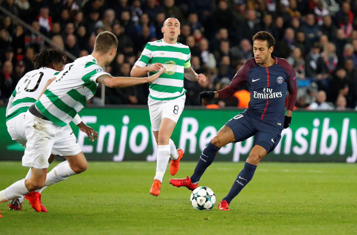 Soccer Football - Champions League - Paris St Germain vs Celtic - Parc des Princes, Paris, France - November 22, 2017 Paris Saint-Germain’s Adrien Rabiot in action with Celtic’s Olivier Ntcham REUTERS/Christian Hartmann Soccer Football - Champions League - Paris St Germain vs Celtic - Parc des Princes, Paris, France - November 22, 2017 Paris Saint-Germain’s Neymar in action with Celtic’s Nir Bitton REUTERS/Charles Platiau Soccer Football - Champions League - Paris St Germain vs Celtic - Parc des Princes, Paris, France - November 22, 2017 Paris Saint-Germain’s Marquinhos in action with Celtic’s Nir Bitton and Scott Brown REUTERS/Charles Platiau Soccer Football - Champions League - Paris St Germain vs Celtic - Parc des Princes, Paris, France - November 22, 2017 Paris Saint-Germain’s Edinson Cavani scores their third goal REUTERS/Charles Platiau Soccer Football - Champions League - Paris St Germain vs Celtic - Parc des Princes, Paris, France - November 22, 2017 Paris Saint-Germain’s Neymar scores their second goal REUTERS/Charles Platiau Soccer Football - Champions League - Paris St Germain vs Celtic - Parc des Princes, Paris, France - November 22, 2017 Paris Saint-Germain’s Neymar in action REUTERS/Charles Platiau