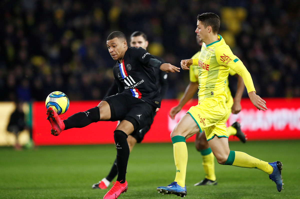 Soccer Football - Ligue 1 - Nantes v Paris St Germain - The Stade de la Beaujoire - Louis Fonteneau, Nantes, France - February 4, 2020 Paris St Germain's Kylian Mbappe in action REUTERS/Stephane Mahe