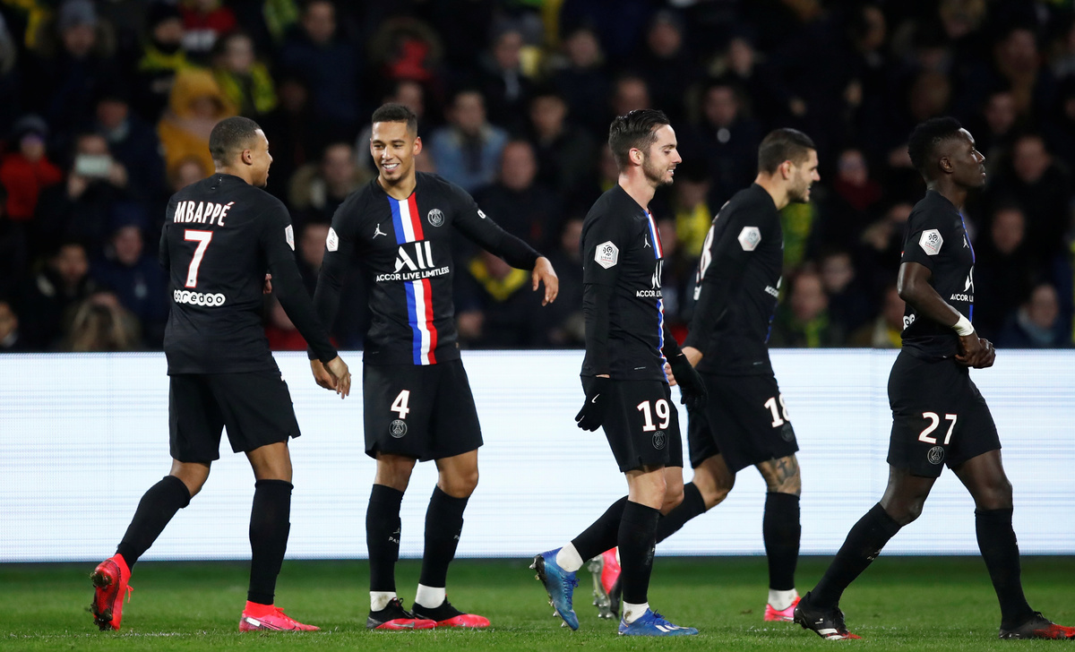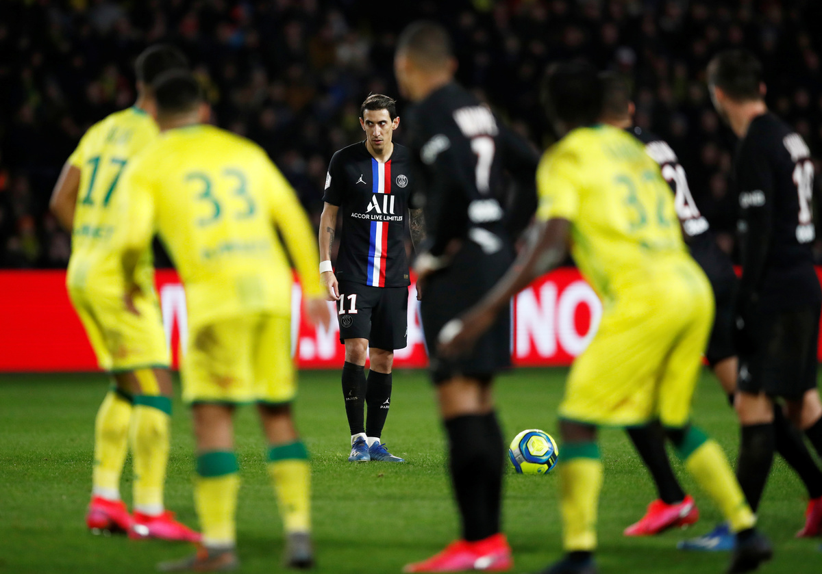 Soccer Football - Ligue 1 - Nantes v Paris St Germain - The Stade de la Beaujoire - Louis Fonteneau, Nantes, France - February 4, 2020 Paris St Germain's Angel Di Maria in action REUTERS/Stephane MaheSoccer Football - Ligue 1 - Nantes v Paris St Germain - The Stade de la Beaujoire - Louis Fonteneau, Nantes, France - February 4, 2020 Paris St Germain's Thilo Kehrer celebrates scoring their second goal with Angel Di Maria, Pablo Sarabia and Idrissa Gueye REUTERS/Stephane MaheSoccer Football - Ligue 1 - Nantes v Paris St Germain - The Stade de la Beaujoire - Louis Fonteneau, Nantes, France - February 4, 2020 Paris St Germain's Kylian Mbappe in action with Nantes' Andrei Girotto REUTERS/Stephane MaheSoccer Football - Ligue 1 - Nantes v Paris St Germain - The Stade de la Beaujoire - Louis Fonteneau, Nantes, France - February 4, 2020 Paris St Germain fans inside the stadium before the match REUTERS/Stephane MaheSoccer Football - Ligue 1 - Nantes v Paris St Germain - The Stade de la Beaujoire - Louis Fonteneau, Nantes, France - February 4, 2020 General view of Nantes fans before the match REUTERS/Stephane Mahe
