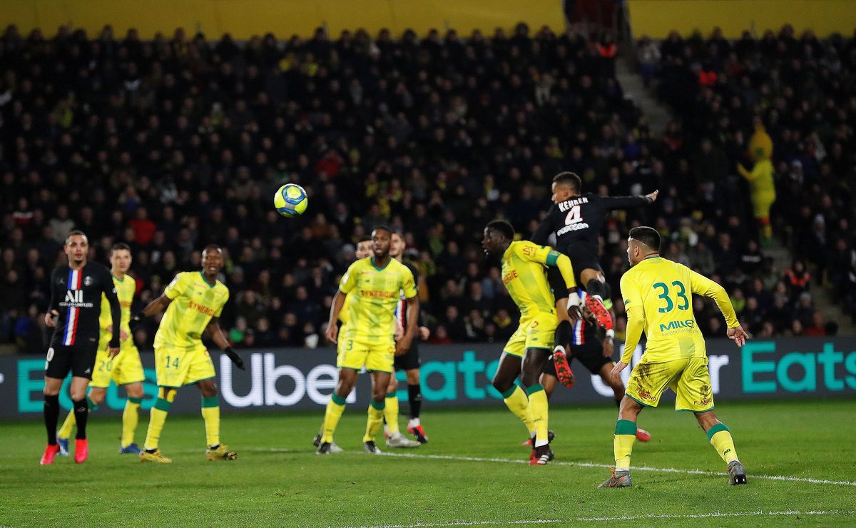 Soccer Football - Ligue 1 - Nantes v Paris St Germain - The Stade de la Beaujoire - Louis Fonteneau, Nantes, France - February 4, 2020 Paris St Germain's Thilo Kehrer scores their second goal REUTERS/Stephane MaheSoccer Football - Ligue 1 - Nantes v Paris St Germain - The Stade de la Beaujoire - Louis Fonteneau, Nantes, France - February 4, 2020 Paris St Germain's Keylor Navas in action REUTERS/Stephane Mahe