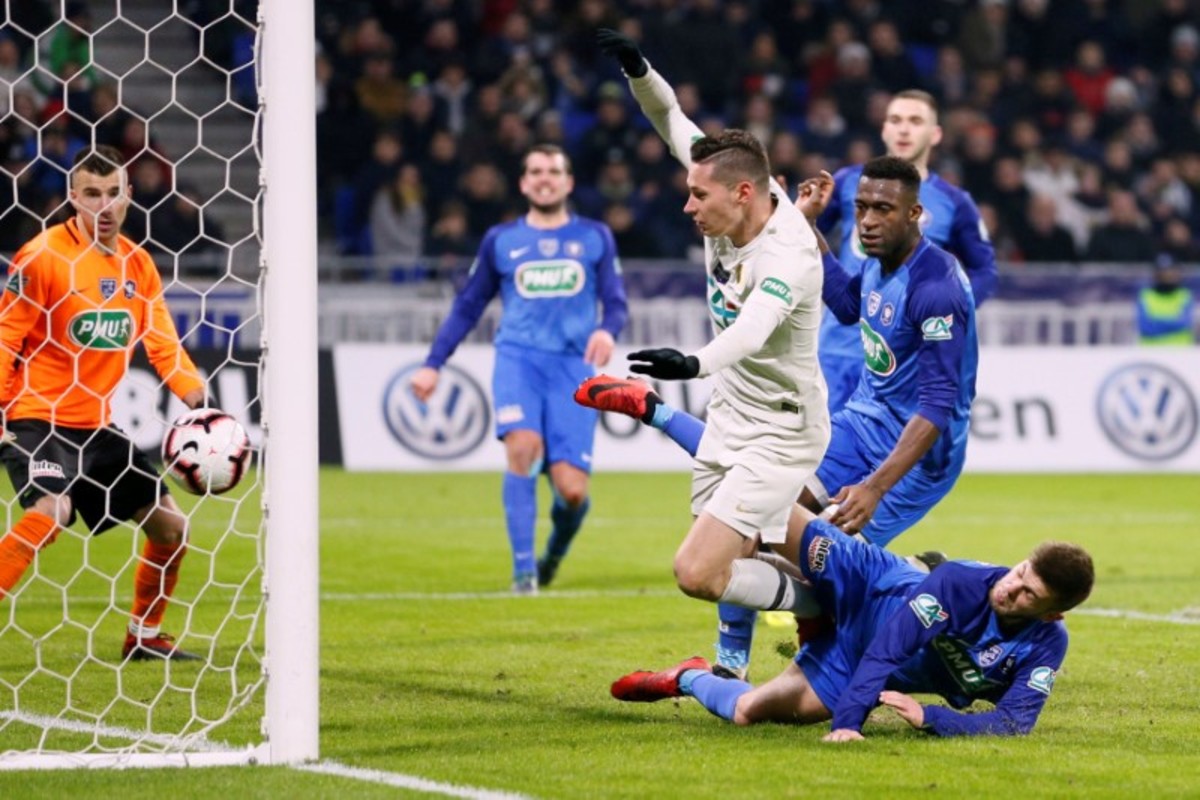Soccer Football - Coupe de France - Round of 16 - FC Villefranche v Paris St Germain - Groupama Stadium, Lyon, France - February 6, 2019 Paris St Germain's Julian Draxler scores their first goal REUTERS/Emmanuel Foudrot