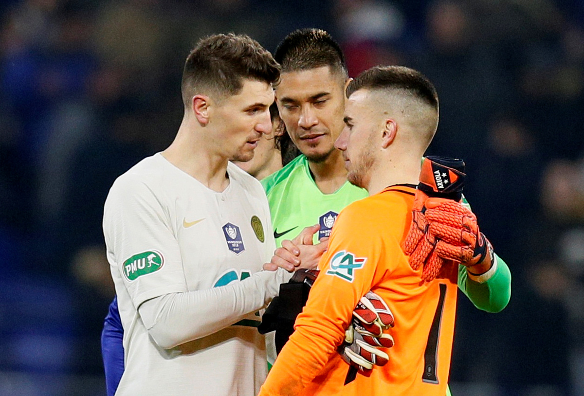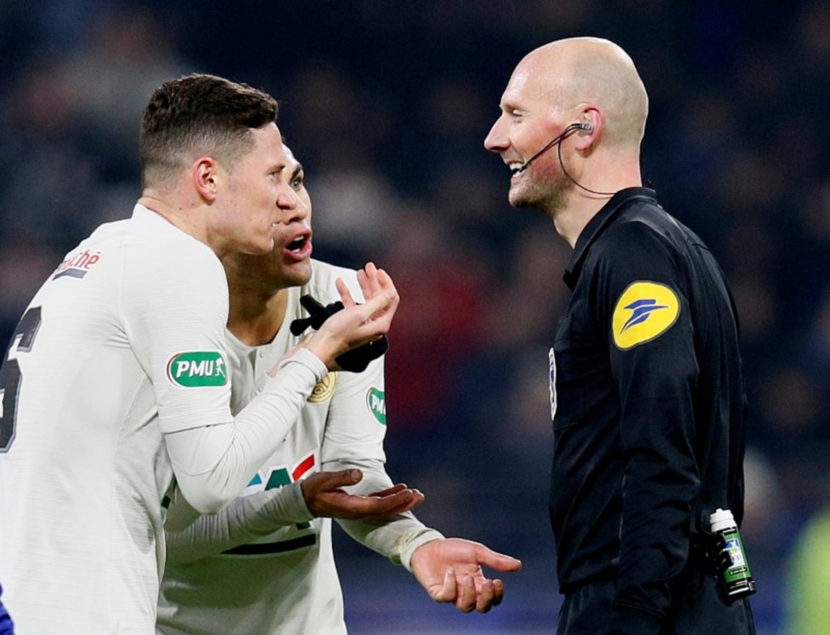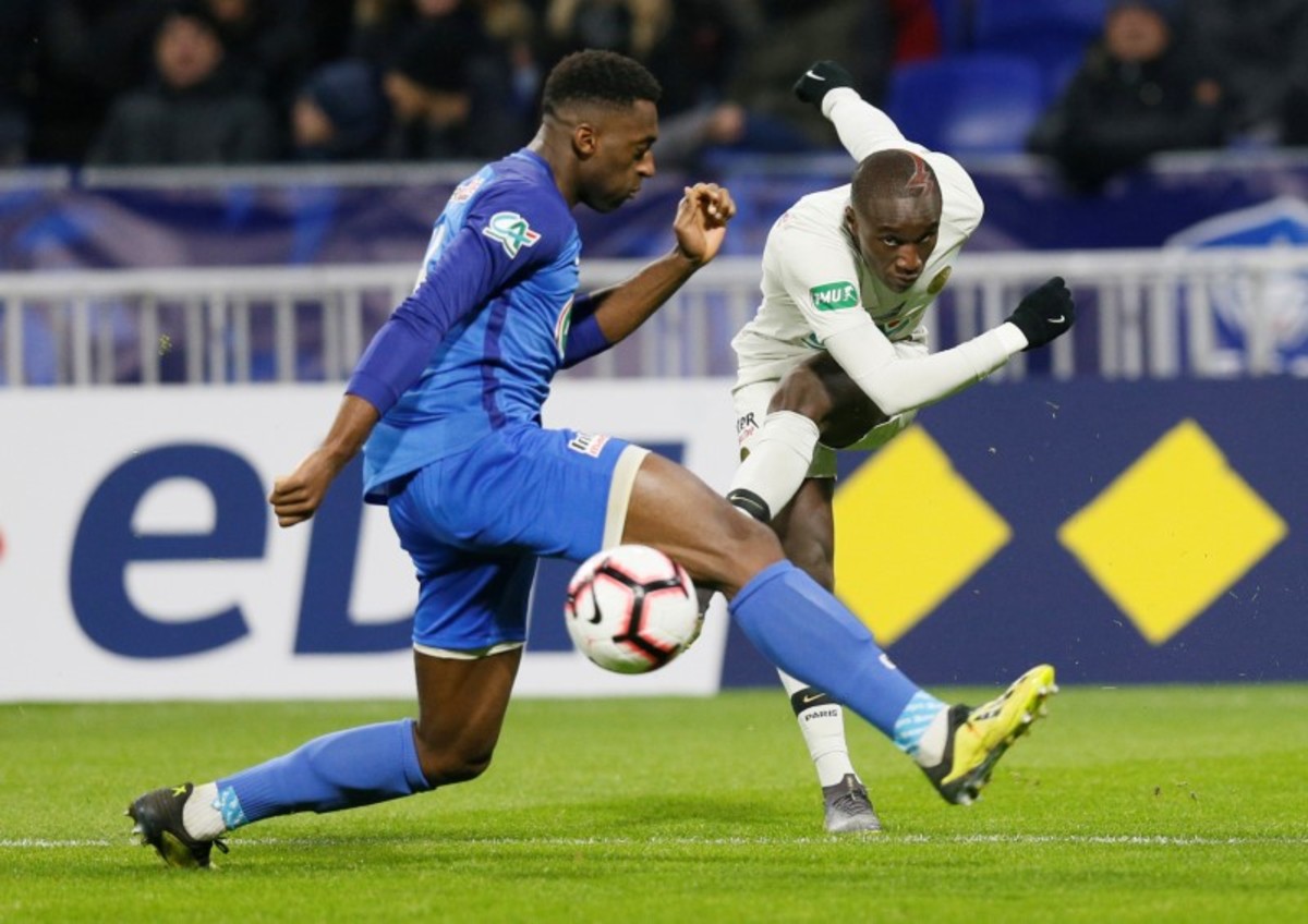 Soccer Football - Coupe de France - Round of 16 - FC Villefranche v Paris St Germain - Groupama Stadium, Lyon, France - February 6, 2019 Paris St Germain's Christopher Nkunku in action with FC Villefranche's Remy Sergio REUTERS/Emmanuel FoudrotSoccer Football - Coupe de France - Round of 16 - FC Villefranche v Paris St Germain - Groupama Stadium, Lyon, France - February 6, 2019 Paris St Germain's Moussa Diaby in action REUTERS/Emmanuel FoudrotSoccer Football - Coupe de France - Round of 16 - FC Villefranche v Paris St Germain - Groupama Stadium, Lyon, France - February 6, 2019 Paris St Germain's Alphonse Areola makes a save REUTERS/Emmanuel FoudrotSoccer Football - Coupe de France - Round of 16 - FC Villefranche v Paris St Germain - Groupama Stadium, Lyon, France - February 6, 2019 Paris St Germain's Julian Draxler gestures to referee Antony Gautier REUTERS/Emmanuel FoudrotSoccer Football - Coupe de France - Round of 16 - FC Villefranche v Paris St Germain - Groupama Stadium, Lyon, France - February 6, 2019 Paris St Germain's Moussa Diaby celebrates scoring their second goal with Kylian Mbappe REUTERS/Emmanuel FoudrotSoccer Football - Coupe de France - Round of 16 - FC Villefranche v Paris St Germain - Groupama Stadium, Lyon, France - February 6, 2019 Paris St Germain's Thomas Meunier and Alphonse Areola with FC Villefranche's Antoine Philippon after the match REUTERS/Emmanuel Foudrot
