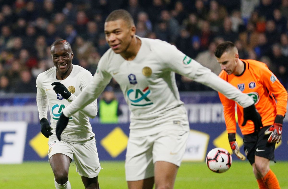 PARIS (Reuters) - Holders Paris St Germain were taken to extra time by third division side Villefranche Beaujolais on Wednesday but reached the French Cup quarter-finals after substitutes Kylian Mbappe and Edinson Cavani helped them to a 3-0 win.