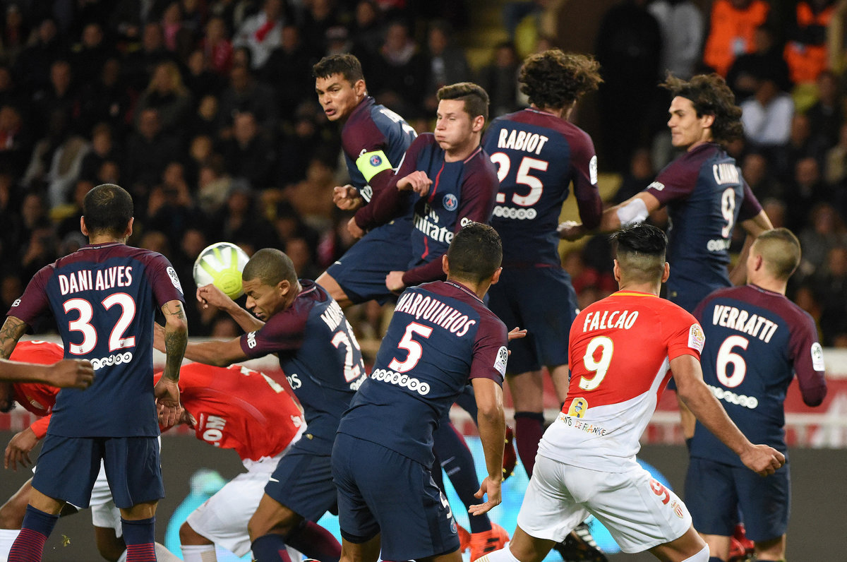The victory put PSG on 38 points after 14 games ahead of Olympique Lyonnais whose 5-0 hammering of Nice had put them second on goal difference above Monaco while Olympique Marseille are fourth on 28 points after a 1-0 home win over Guingamp.