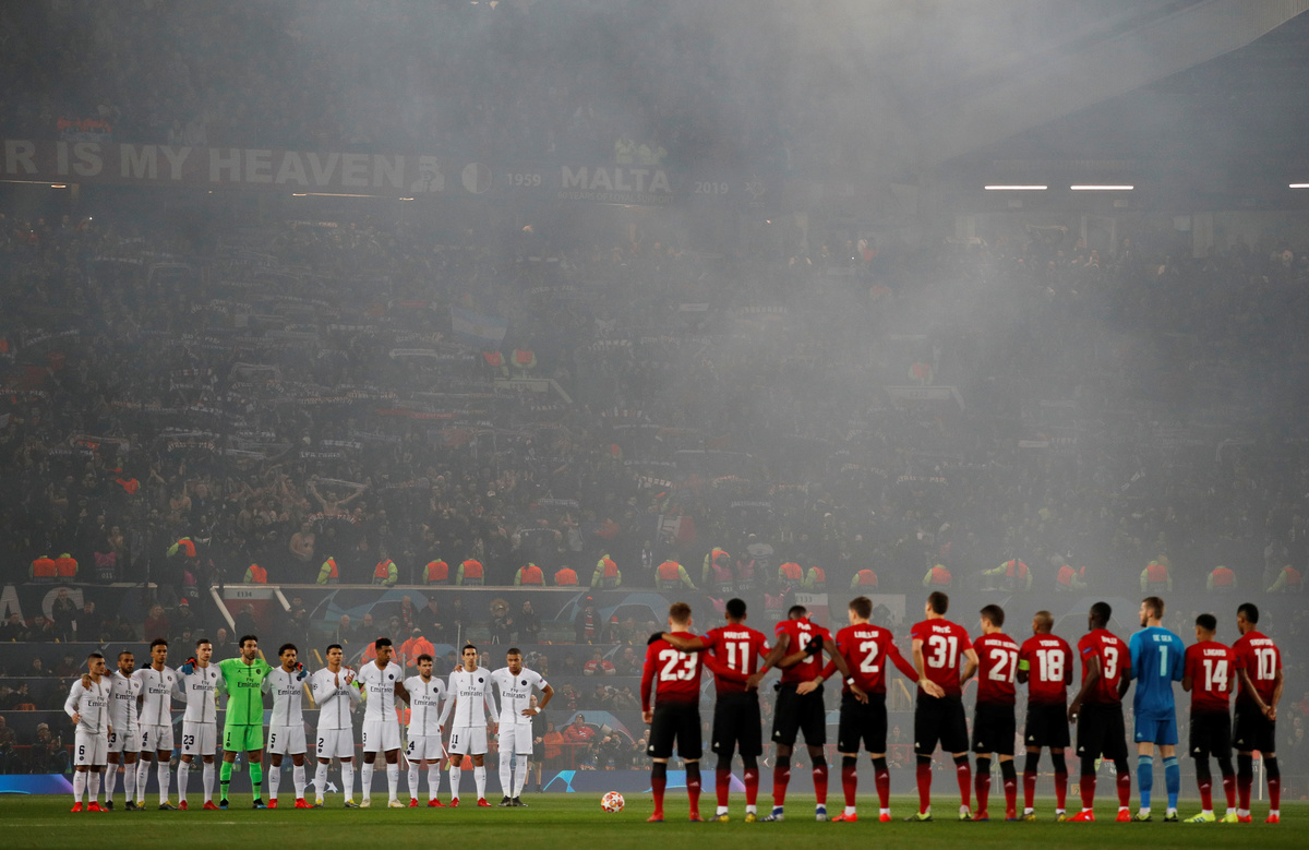 Soccer Football - Champions League Round of 16 First Leg - Manchester United v Paris St Germain - Old Trafford, Manchester, Britain - February 12, 2019 Paris St Germain president Nasser Al-Khelaifi celebrates at the end of the match Action Images via Reuters/Jason CairnduffSoccer Football - Champions League Round of 16 First Leg - Manchester United v Paris St Germain - Old Trafford, Manchester, Britain - February 12, 2019 Manchester United's Paul Pogba in action with Paris St Germain's Julian Draxler REUTERS/Phil NobleSoccer Football - Champions League Round of 16 First Leg - Manchester United v Paris St Germain - Old Trafford, Manchester, Britain - February 12, 2019 Manchester United's Jesse Lingard walks off with a physio after sustaining an injury Action Images via Reuters/Jason CairnduffSoccer Football - Champions League Round of 16 First Leg - Manchester United v Paris St Germain - Old Trafford, Manchester, Britain - February 12, 2019 Paris St Germain's Kylian Mbappe has a shot saved by Manchester United's David de Gea Action Images via Reuters/Jason CairnduffSoccer Football - Champions League Round of 16 First Leg - Manchester United v Paris St Germain - Old Trafford, Manchester, Britain - February 12, 2019 Paris St Germain's Marco Verratti in action with Manchester United's Ander Herrera REUTERS/Phil NobleSoccer Football - Champions League Round of 16 First Leg - Manchester United v Paris St Germain - Old Trafford, Manchester, Britain - February 12, 2019 Paris St Germain's Julian Draxler in action with Manchester United's Alexis Sanchez REUTERS/Phil NobleSoccer Football - Champions League Round of 16 First Leg - Manchester United v Paris St Germain - Old Trafford, Manchester, Britain - February 12, 2019 Paris St Germain's Kylian Mbappe shoots at goal as Manchester United's David de Gea attempts to save REUTERS/Phil NobleSoccer Football - Champions League Round of 16 First Leg - Manchester United v Paris St Germain - Old Trafford, Manchester, Britain - February 12, 2019 Referee Daniele Orsato gestures as Paris St Germain's Thiago Silva reacts after going down Action Images via Reuters/Jason CairnduffSoccer Football - Champions League Round of 16 First Leg - Manchester United v Paris St Germain - Old Trafford, Manchester, Britain - February 12, 2019 Manchester United's David de Gea and team mates look dejected after conceding their first goal scored by Paris St Germain's Presnel Kimpembe (not pictured) REUTERS/Phil NobleSoccer Football - Champions League Round of 16 First Leg - Manchester United v Paris St Germain - Old Trafford, Manchester, Britain - February 12, 2019 Sir Alex Ferguson in the stands before the match Action Images via Reuters/Jason CairnduffSoccer Football - Champions League Round of 16 First Leg - Manchester United v Paris St Germain - Old Trafford, Manchester, Britain - February 12, 2019 Manchester United's Nemanja Matic in action with Paris St Germain's Marco Verratti Action Images via Reuters/Jason CairnduffSoccer Football - Champions League Round of 16 First Leg - Manchester United v Paris St Germain - Old Trafford, Manchester, Britain - February 12, 2019 Manchester United interim manager Ole Gunnar Solskjaer before the match Action Images via Reuters/Jason CairnduffSoccer Football - Champions League Round of 16 First Leg - Manchester United v Paris St Germain - Old Trafford, Manchester, Britain - February 12, 2019 Manchester United's Jesse Lingard in action with Paris St Germain's Marquinhos Action Images via Reuters/Jason CairnduffSoccer Football - Champions League Round of 16 First Leg - Manchester United v Paris St Germain - Old Trafford, Manchester, Britain - February 12, 2019 General view of players from both teams obvserving a minute's applause in memory of Emiliano Sala before the match REUTERS/Phil Noble