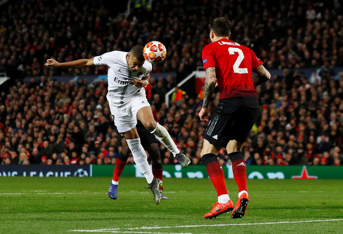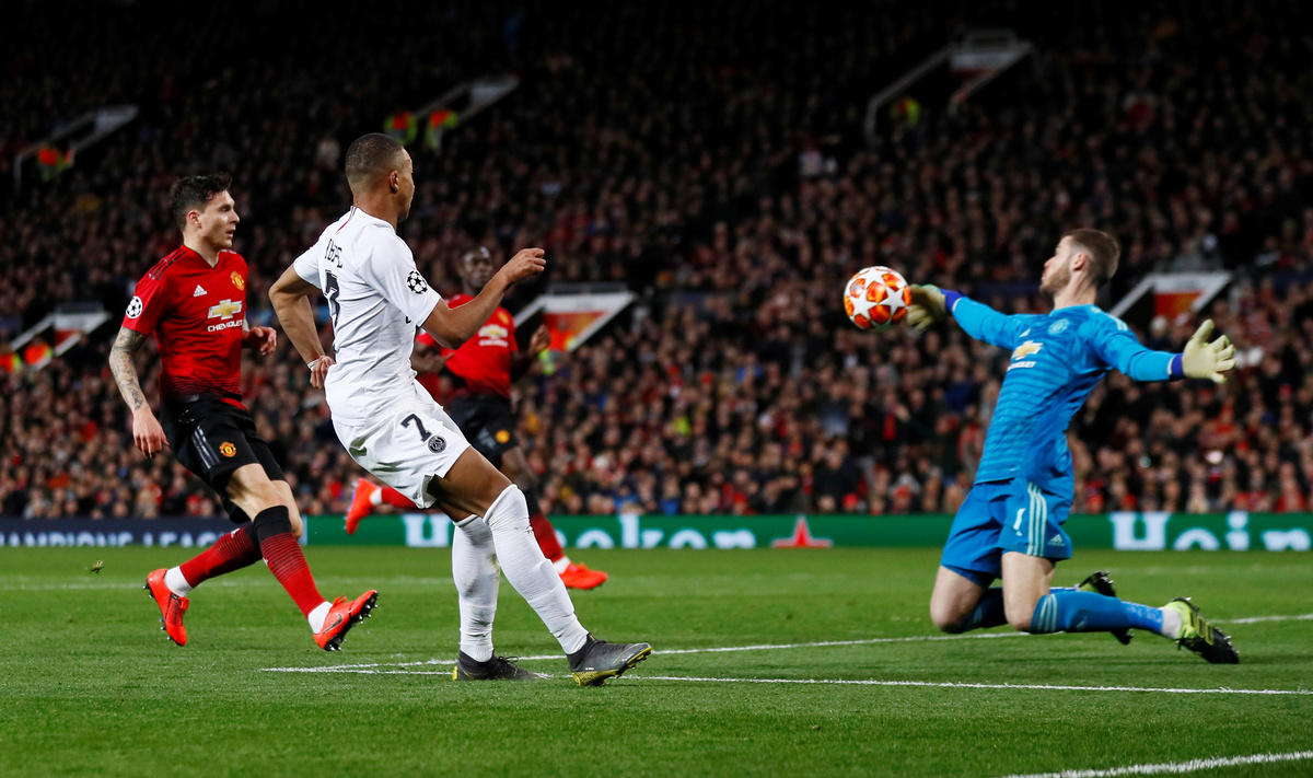 Soccer Football - Champions League Round of 16 First Leg - Manchester United v Paris St Germain - Old Trafford, Manchester, Britain - February 12, 2019 Paris St Germain's Kylian Mbappe scores their second goal Action Images via Reuters/Jason Cairnduff