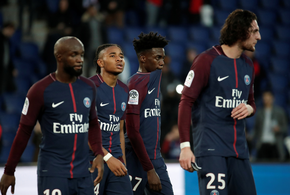 Soccer Football - Ligue 1 - Paris St Germain vs FC Metz - Parc des Princes, Paris, France - March 10, 2018 Paris Saint-Germain's Christopher Nkunku celebrates scoring their second goal with Presnel Kimpembe REUTERS/Benoit TessierSoccer Football - Ligue 1 - Paris St Germain vs FC Metz - Parc des Princes, Paris, France - March 10, 2018 Paris Saint-Germain coach Unai Emery REUTERS/Benoit TessierSoccer Football - Ligue 1 - Paris St Germain vs FC Metz - Parc des Princes, Paris, France - March 10, 2018 Paris Saint-Germain's Kylian Mbappe in action REUTERS/Benoit TessierSoccer Football - Ligue 1 - Paris St Germain vs FC Metz - Parc des Princes, Paris, France - March 10, 2018 Metz's Eiji Kawashima in action REUTERS/Benoit TessierSoccer Football - Ligue 1 - Paris St Germain vs FC Metz - Parc des Princes, Paris, France - March 10, 2018 Paris Saint-Germain's Angel Di Maria in action with Metz's Jonathan Rivierez REUTERS/Benoit TessierSoccer Football - Ligue 1 - Paris St Germain vs FC Metz - Parc des Princes, Paris, France - March 10, 2018 Paris Saint-Germain fans during the match REUTERS/Benoit TessierSoccer Football - Ligue 1 - Paris St Germain vs FC Metz - Parc des Princes, Paris, France - March 10, 2018 Paris Saint-Germain's Tim Weah and team mates after the match REUTERS/Benoit Tessier
