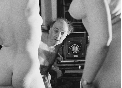 In 1958, he produced a book of nude photographs featuring pastiches of classical paintings alongside experimental lighting treatments in eclectic settings. It depicted female models amid looming shadows, dustbin lids, cellophane and vegetables.