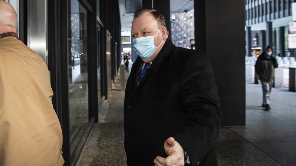 But following a request from one of ex-Chicago Ald. Ed Burke’s lawyers, courthouse staff began temporarily covering up some of the 11 displays on the wall, including one about the history of public corruption prosecutions in Illinois.