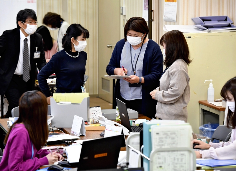 At noon on April 16, the voices of 15 workers were heard responding to a barrage of telephone inquiries at a public health center in Katsushika Ward, Tokyo.