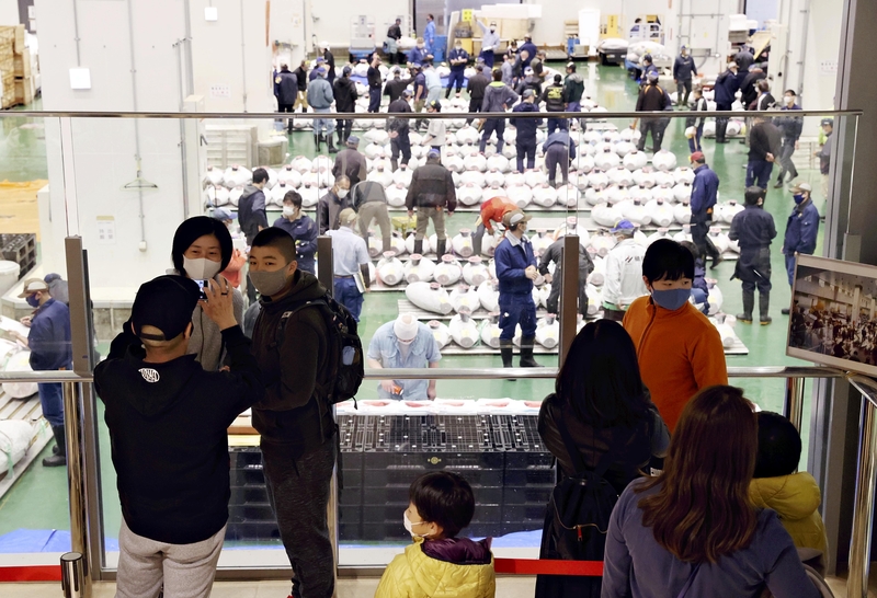 Last year, about 10,000 people visited the market to view the tuna auctions. Spectators were limited to a maximum total of 120 people for two daily viewings until public viewing was suspended in late February.