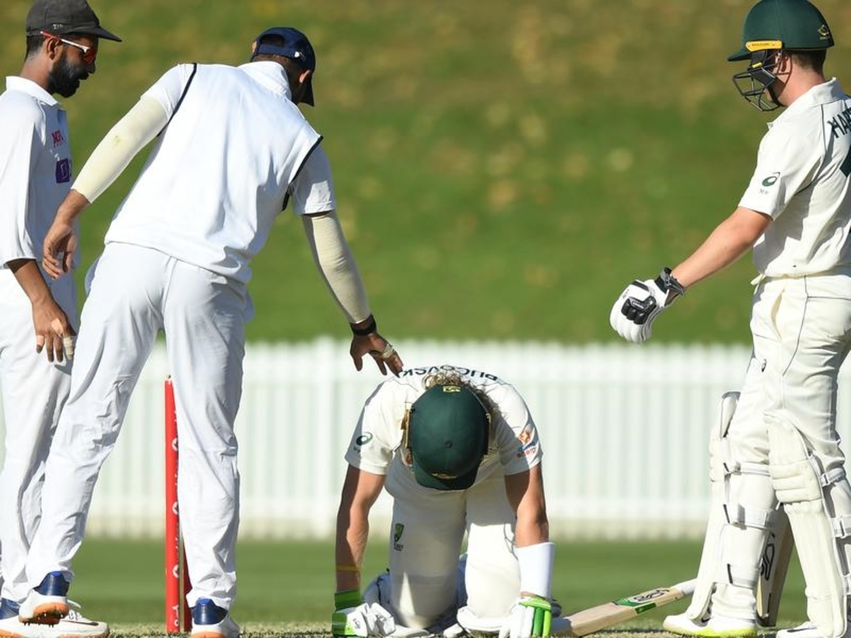 He looked in good spirits leaving Drummoyne Oval after his knock to the head from a Kartik Tyagi short ball, but was left behind in Sydney to recover after suffering mild concussion symptoms.