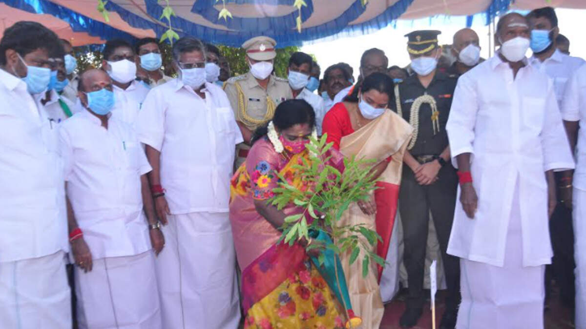 Lieutenant governor (additional charge) Tamilisai Soundarajan inaugurated the plantation exercise in the presence of chief minister N Rangasamy, speaker R Selvam, home minister A Namassivayam, public works minister K Lakshminarayanan, agriculture minister C Djeacoumar, civil supplies and consumer affairs minister A K Sai J Saravanan Kumar and MLAs R Senthil Kumar and Ashok Babu, chief secretary Ashwani Kumar, secretary (information) C Udayakumar, secretary (forest) R Smitha and other officials at 8.30am at Manapet village, Bahour commune.