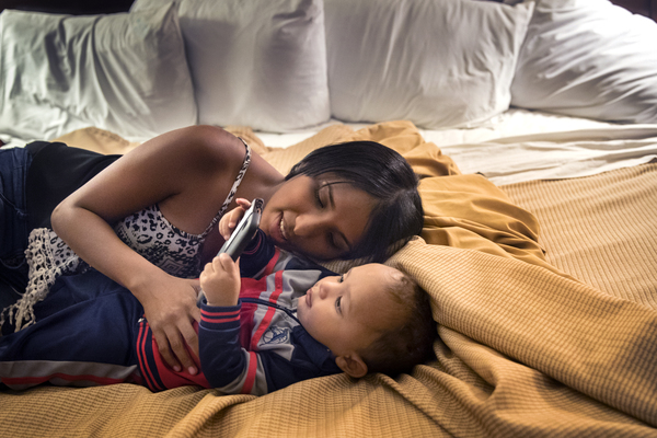 In the meantime, he and his wife huddle together in their hotel room's single bed, urging their two toddlers to be patient, to take in stride the strange new world of New England.