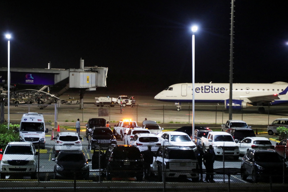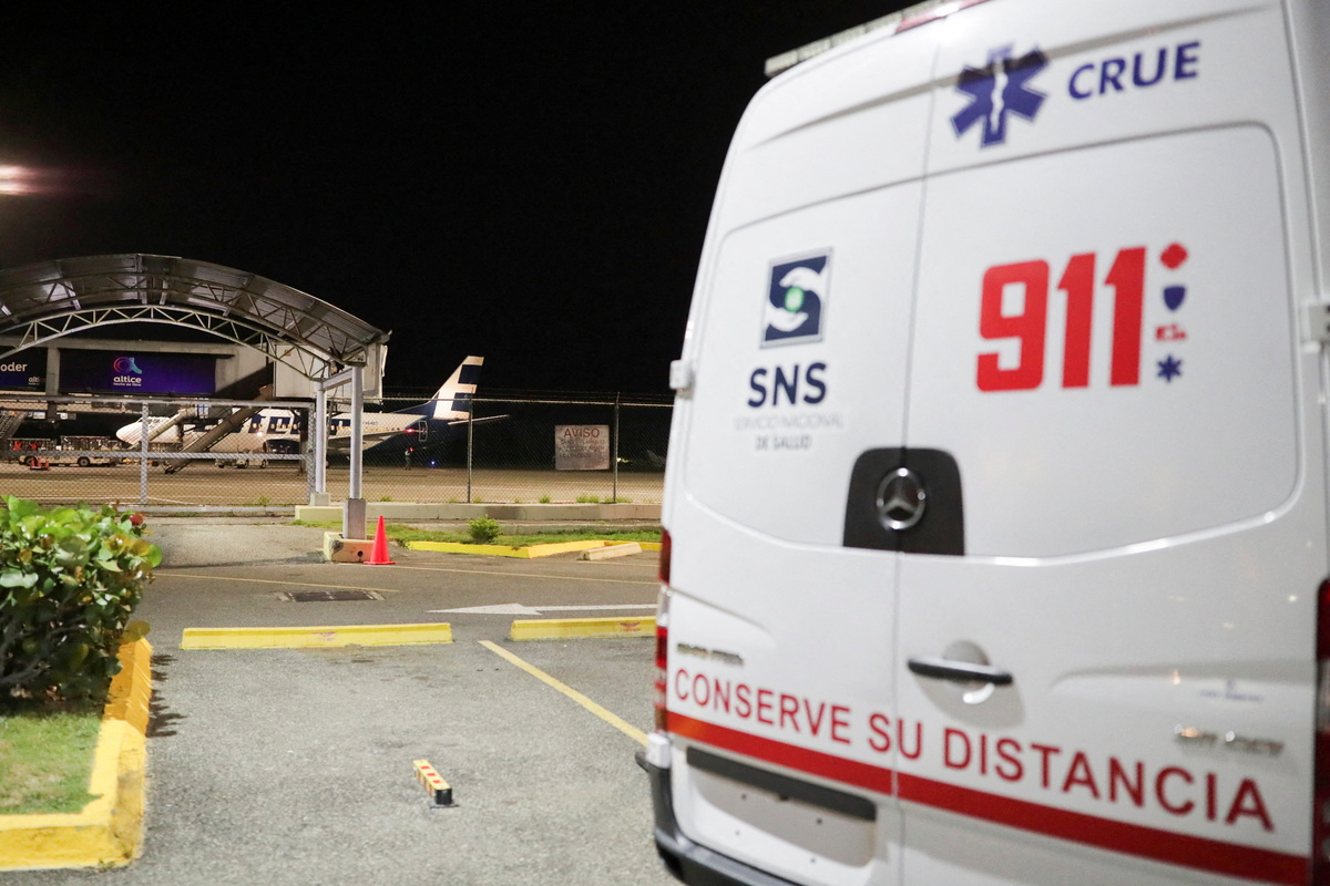 FILE PHOTO: Members of the specialised airport corps walk at Las Americas International Airport where a private jet crashed on Wednesday, killing all nine people on board, including Puerto Rican music producer Flow La Movie, according to the airline and local media in Santo Domingo, Dominican Republic December 15, 2021. REUTERS/Ricardo RojasFILE PHOTO: An ambulance is parked on the outskirts of the Las Americas International Airport where a private jet crashed on Wednesday, killing all nine people on board, including Puerto Rican music producer Flow La Movie, according to the airline and local media in Santo Domingo, Dominican Republic December 15, 2021. REUTERS/Ricardo Rojas