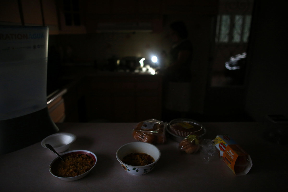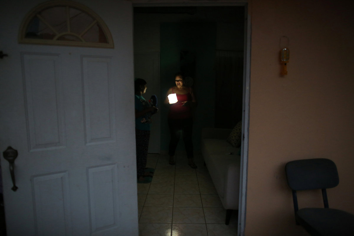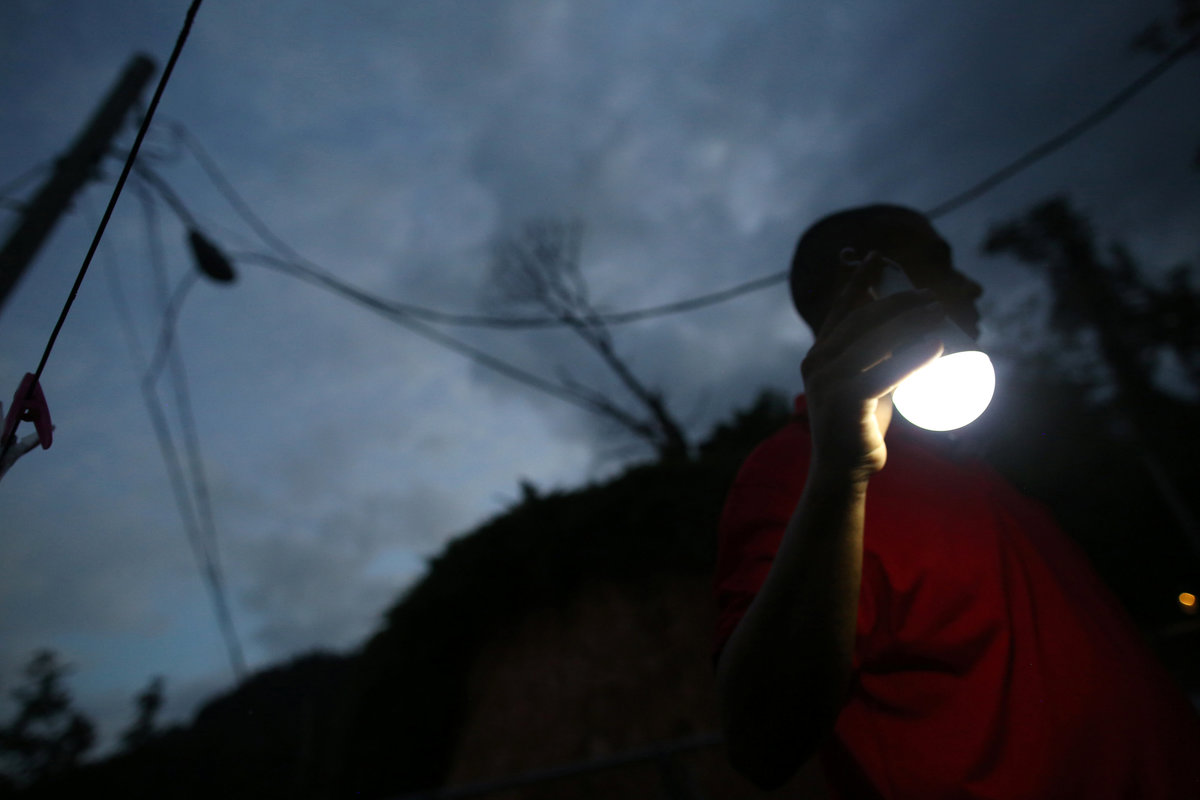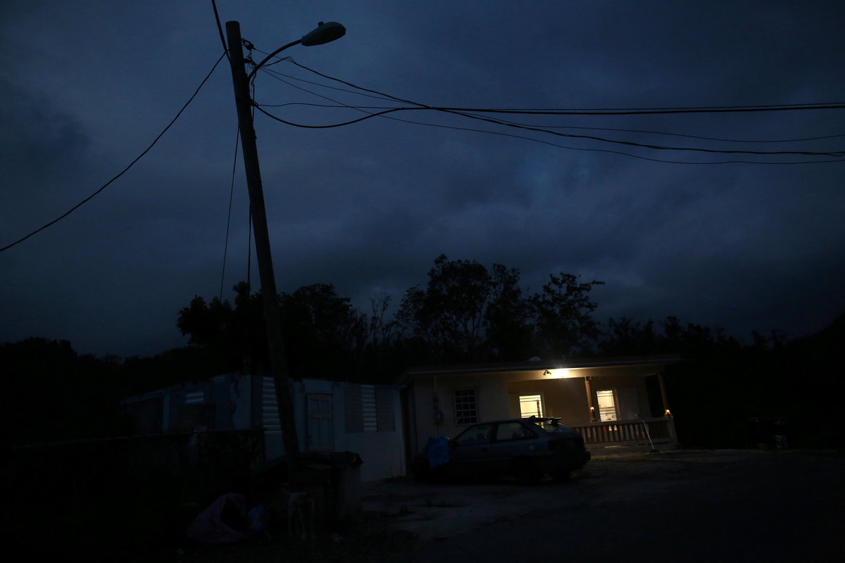 Food is seen on a kitchen counter in a house without electricity, as the island's fragile power system is still reeling from the devastation wrought by Hurricane Maria eight months ago, in Adjuntas, Puerto Rico May 11, 2018. REUTERS/Alvin BaezA house illuminated with the help of a generator is seen in the dark as the island's fragile power system is still reeling from the devastation wrought by Hurricane Maria eight months ago, in Adjuntas, Puerto Rico May 11, 2018. REUTERS/Alvin BaezWorkers of Puerto Rico's Electric Power Authority (PREPA) repair part of the electrical grid as the island's fragile power system is still reeling from the devastation wrought by Hurricane Maria eight months ago, in Utuado, Puerto Rico May 17, 2018. REUTERS/Alvin BaezResidents of La Chorrera neighbourhood work on an electricity pole as the island's fragile power system is still reeling from the devastation wrought by Hurricane Maria eight months ago, in Utuado, Puerto Rico May 12, 2018. REUTERS/Alvin BaezJannet Rodriguez (R), 44, uses a solar lamp while talking to her daughter Keimiliz, as the island's fragile power system is still reeling from the devastation wrought by Hurricane Maria eight months ago, in Jayuya, Puerto Rico May 11, 2018. Picture taken May 11, 2018. REUTERS/Alvin BaezA horse eats from the hand of a young man while being illuminated by a flashlight as the island's fragile power system is still reeling from the devastation wrought by Hurricane Maria eight months ago, in Adjuntas, Puerto Rico May 12, 2018. REUTERS/Alvin BaezA cat sits next to a generator in a house without electricity as the island's fragile power system is still reeling from the devastation wrought by Hurricane Maria eight months ago, in Adjuntas, Puerto Rico May 12, 2018. REUTERS/Alvin BaezWilson Reyes, 44, uses a solar lamp while walking in the dark as the island's fragile power system is still reeling from the devastation wrought by Hurricane Maria eight months ago, in Jayuya, Puerto Rico May 11, 2018. Picture taken May 11, 2018. REUTERS/Alvin BaezA resident of La Chorrera neighbourhood tries to fix an electrical grid as the island's fragile power system is still reeling from the devastation wrought by Hurricane Maria eight months ago, in Utuado, Puerto Rico May 11, 2018. REUTERS/Alvin Baez