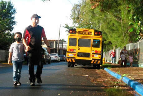 Of the island’s 858 public schools, 95 were authorized to reopen because they were located in a municipality with a low number of coronavirus cases and also met a list of requirements issued by Puerto Rico’s Health Department. Among them was the Ramón Marín Solá primary school in Guaynabo, where parents adjusted their children’s face masks before hugging them goodbye.