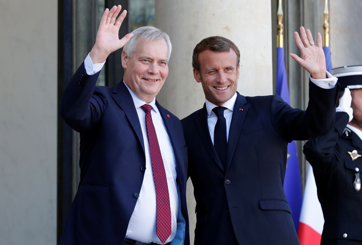 Rinne later posted a photo of the pair with Macron holding what the Finland Prime Minister described as a "small gift."