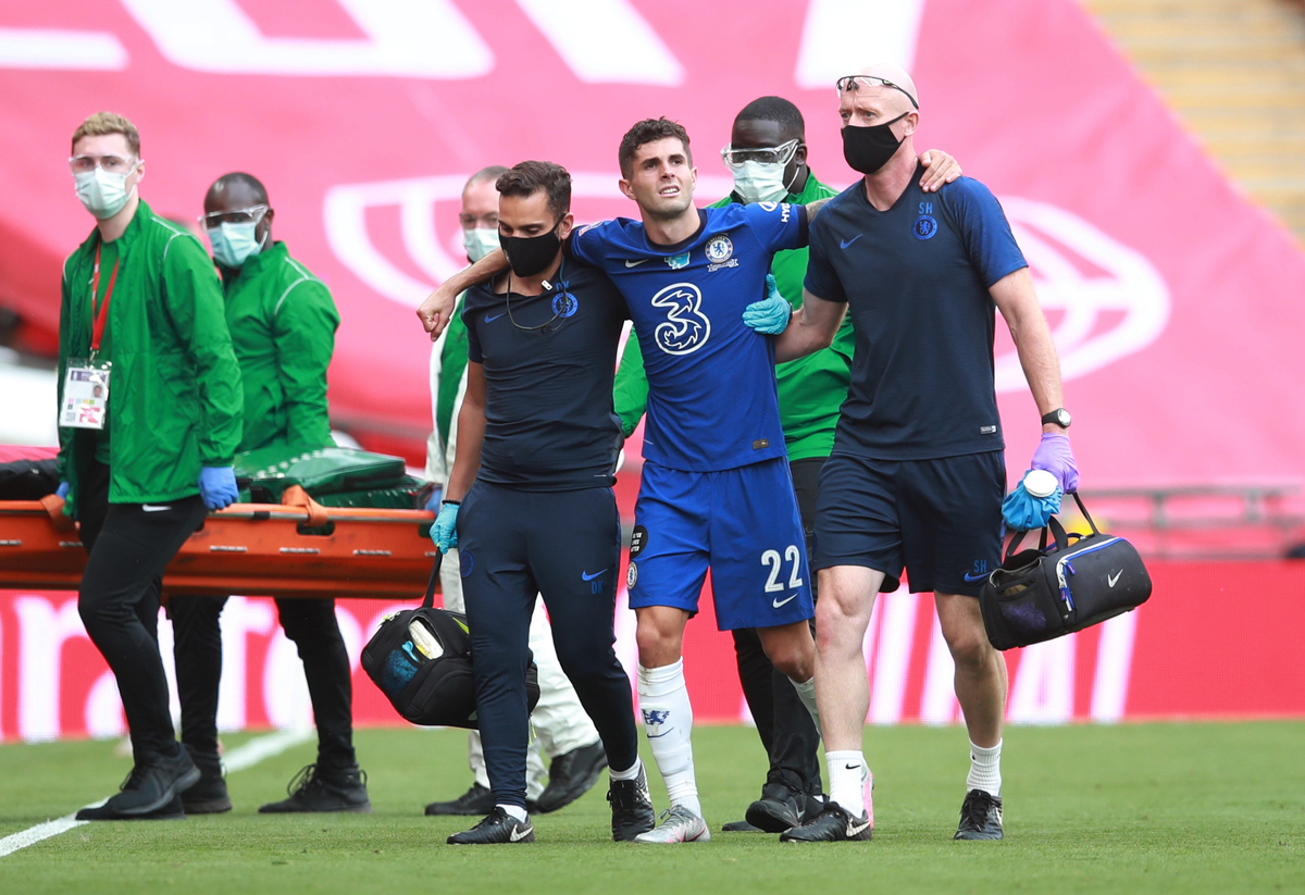 Soccer Football - FA Cup Final - Arsenal v Chelsea - Wembley Stadium, London, Britain - August 1, 2020 Chelsea's Christian Pulisic after sustaining an injury, as play resumes behind closed doors following the outbreak of the coronavirus disease (COVID-19) Pool via REUTERS/Adam Davy