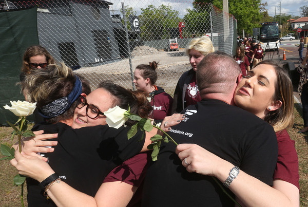The visitors from Parkland made a stop at Pulse to pay tribute to the nightclub shooting victims and show solidarity with its survivors and activists as part of their trip home from Tallahassee, where they had petitioned lawmakers to reform the state's gun laws.