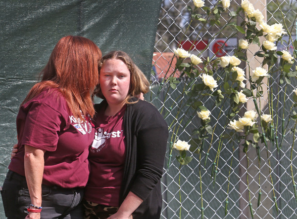 Pulse survivors, wearing shirts that read "We Will Not Let Hate Win," stood among Parkland survivors, whose shirts read "Kids First, Politics Second." The Parkland group hung 49 white roses on the gate surrounding the nightclub, one for each of the victims.