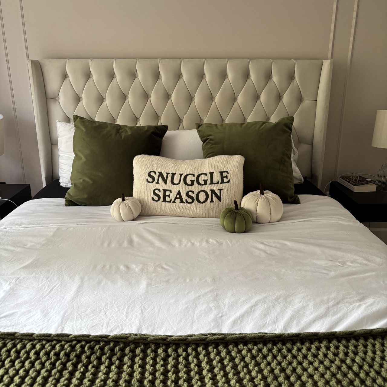 Picture this: it’s 8am on Sunday morning, you’ve woken up to the sound of rain tapping against your windows…oh so relaxing. You put on your cosiest dressing gown and slide on your slippers before making your bed and topping it off with a chunky cable knit throw and some boucle decorative pumpkins.