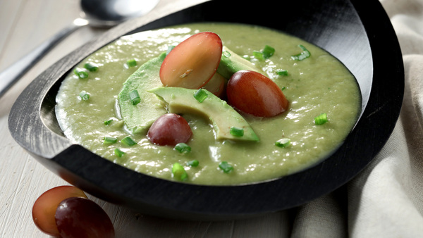 To round out my take-along lunch, I make another traditional recipe: Gazpacho _ Spain's cold, refreshing soup usually reliant upon tomatoes. For variety, I use herbs and cucumber for a green gazpacho that enlivens any day. Make the vegetable base in advance, and then blend in avocado for a creamy texture. The soup keeps in the refrigerator for a few days; I pack it in jars with tight-fitting lids to transport easily.