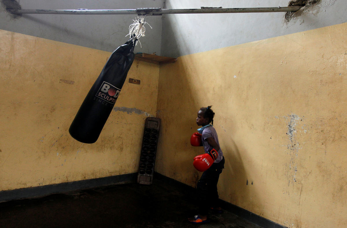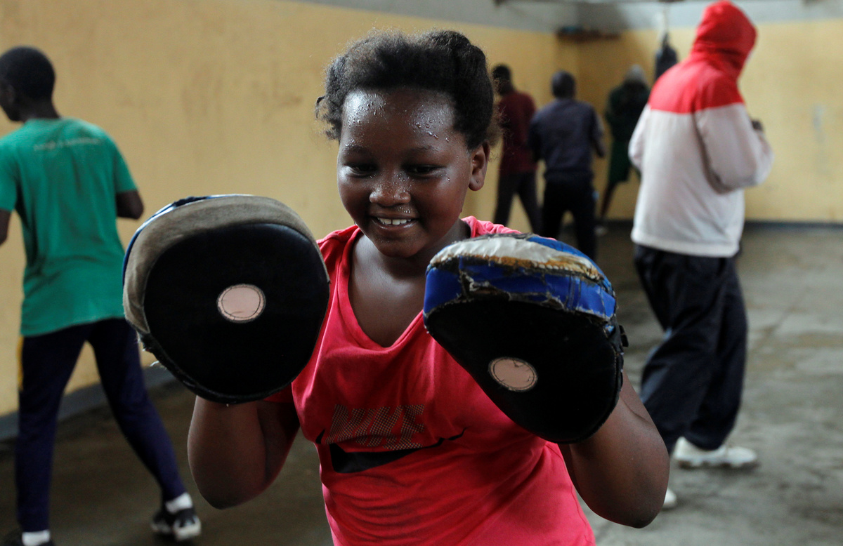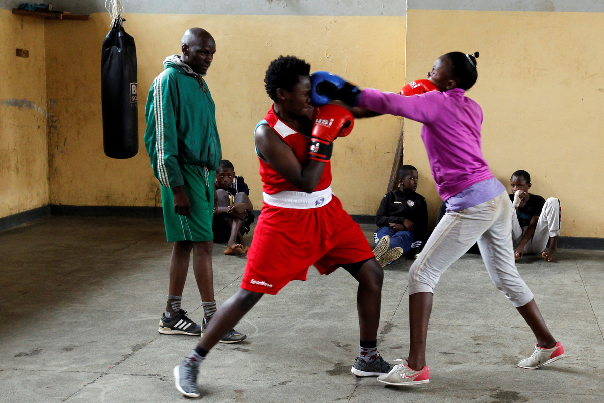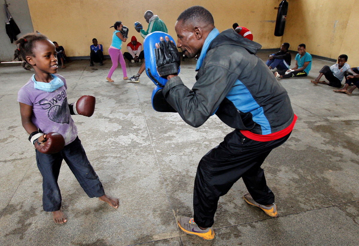 Boxing coach John Kamau trains a student at the Mathare North Boxing Club after the government ordered closure of all schools due to the coronavirus disease (COVID-19) outbreak, in Nairobi Kenya June 17, 2020.REUTERS/Njeri MwangiAndrew Odhiambo, a student who aspires to be a professional boxer trains with other youth at the Mathare North Boxing Club, after the government ordered closure of all schools due to the coronavirus disease (COVID-19) outbreak, in Nairobi Kenya June 17, 2020. REUTERS/Njeri MwangiA child hits a punching bag as she attends a boxing training session at the Mathare North Boxing Club, after the government ordered closure of all schools due to the coronavirus disease (COVID-19) outbreak, in Nairobi Kenya June 17, 2020. REUTERS/Njeri MwangiBoxing coach John Kamau trains a child at the Mathare North Boxing Club after the government ordered closure of all schools due to the coronavirus disease (COVID-19) outbreak, in Nairobi Kenya June 17, 2020. REUTERS/Njeri MwangiBoxing coach John Kamau (2ndL) poses for a photograph with students at the Mathare North Boxing Club after the government ordered closure of all schools due to the coronavirus disease (COVID-19) outbreak, in Nairobi Kenya June 17, 2020. REUTERS/Njeri MwangiA child attends a boxing training session at the Mathare North Boxing Club, after the government ordered closure of all schools due to the coronavirus disease (COVID-19) outbreak, in Nairobi Kenya June 17, 2020. REUTERS/Njeri MwangiStudents Faith Macharia and Vanessa Wanjera spar during a training session at the Mathare North Boxing Club after the government ordered closure of all schools due to the coronavirus disease (COVID-19) outbreak, in Nairobi Kenya June 17, 2020. REUTERS/Njeri Mwangi