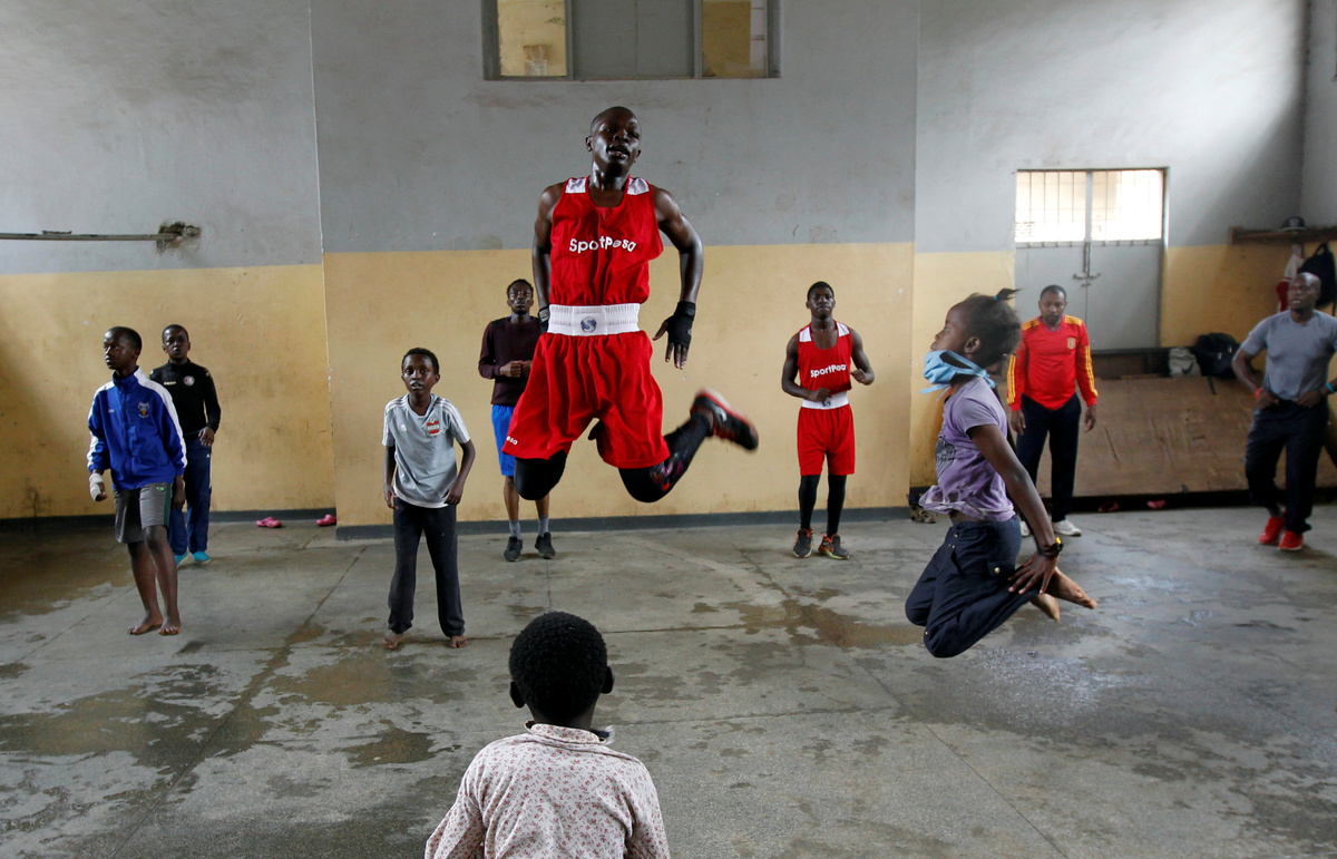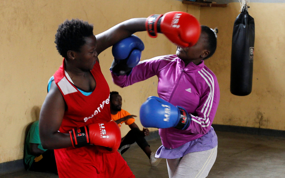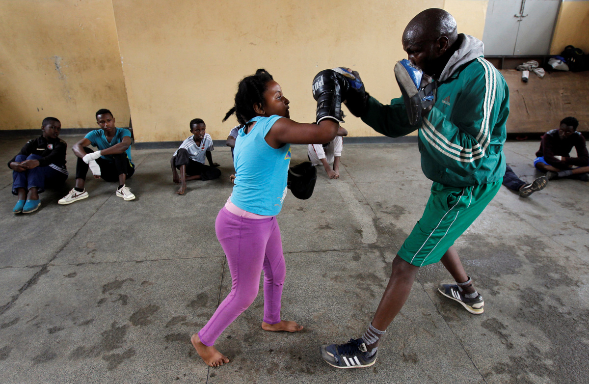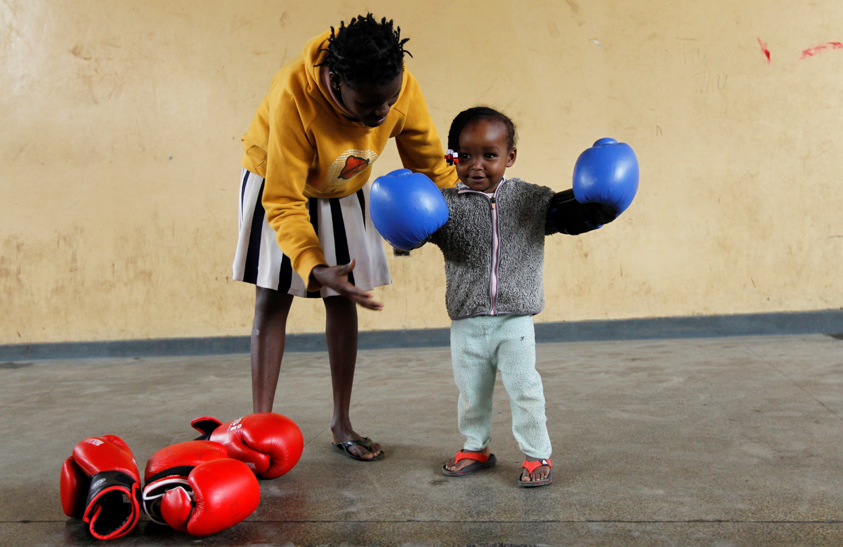 Boxing coach John Kamau trains a student at the Mathare North Boxing Club after the government ordered closure of all schools due to the coronavirus disease (COVID-19) outbreak, in Nairobi Kenya June 17, 2020.REUTERS/Njeri MwangiAndrew Odhiambo, a student who aspires to be a professional boxer trains with other youth at the Mathare North Boxing Club, after the government ordered closure of all schools due to the coronavirus disease (COVID-19) outbreak, in Nairobi Kenya June 17, 2020. REUTERS/Njeri MwangiA child hits a punching bag as she attends a boxing training session at the Mathare North Boxing Club, after the government ordered closure of all schools due to the coronavirus disease (COVID-19) outbreak, in Nairobi Kenya June 17, 2020. REUTERS/Njeri MwangiBoxing coach John Kamau trains a child at the Mathare North Boxing Club after the government ordered closure of all schools due to the coronavirus disease (COVID-19) outbreak, in Nairobi Kenya June 17, 2020. REUTERS/Njeri MwangiBoxing coach John Kamau (2ndL) poses for a photograph with students at the Mathare North Boxing Club after the government ordered closure of all schools due to the coronavirus disease (COVID-19) outbreak, in Nairobi Kenya June 17, 2020. REUTERS/Njeri MwangiA child attends a boxing training session at the Mathare North Boxing Club, after the government ordered closure of all schools due to the coronavirus disease (COVID-19) outbreak, in Nairobi Kenya June 17, 2020. REUTERS/Njeri MwangiStudents Faith Macharia and Vanessa Wanjera spar during a training session at the Mathare North Boxing Club after the government ordered closure of all schools due to the coronavirus disease (COVID-19) outbreak, in Nairobi Kenya June 17, 2020. REUTERS/Njeri Mwangi