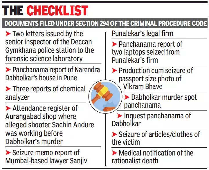 PUNE: The CBI on Thursday submitted to the special UAPA court here 13 documents to be considered as evidence in the August 20, 2013, murder case of veteran rationalist Narendra Dabholkar.