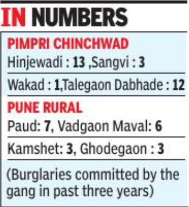 PUNE: The Pimpri Chinchwad police on Thursday claimed to have cracked 48 burglaries with the arrest of two men, part of a six-member gang of criminals.
