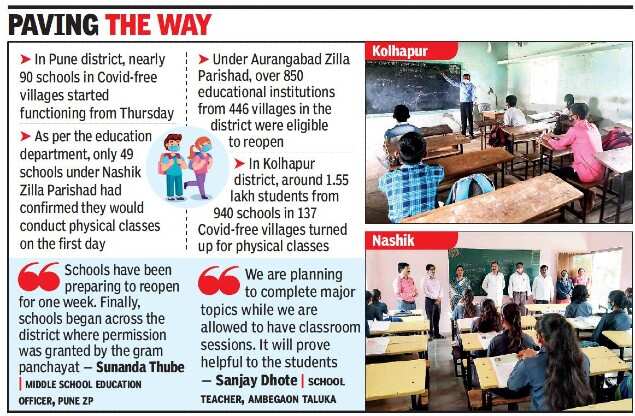 PUNE: Schools in Covid-free villages started offline classes from Thursday for Std VIII to Std XII.