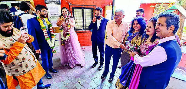 PUNE: The buzz was unmistakable as couples flocked the marriage registrar’s office at Agarkar Nagar on Monday. They all wanted wedlock on Valentine’s Day.
