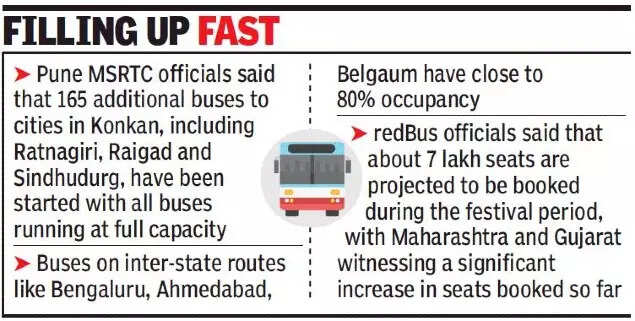 According to the private bus owners’ association, buses going to many places from Pune, especially towards Konkan are running at full capacity since the last three-four days. Buses on inter-state routes like Bengaluru, Ahmedabad, Belgaum have close to 80% occupancy,” Balasaheb Khedekar, president, Pune district Luxury Bus Association, said.