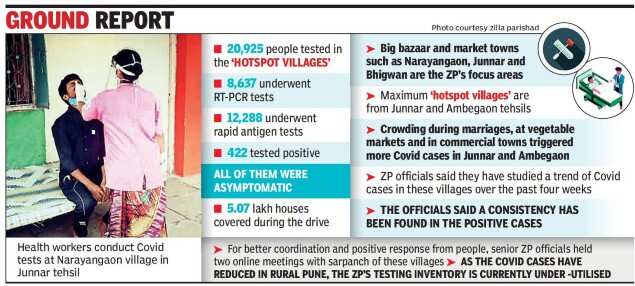 PUNE: Altogether 422 people have so far tested Covid positive during a special drive conducted in 109 ‘hotspot villages’ across 13 tehsils of the district on Tuesday and Wednesday.