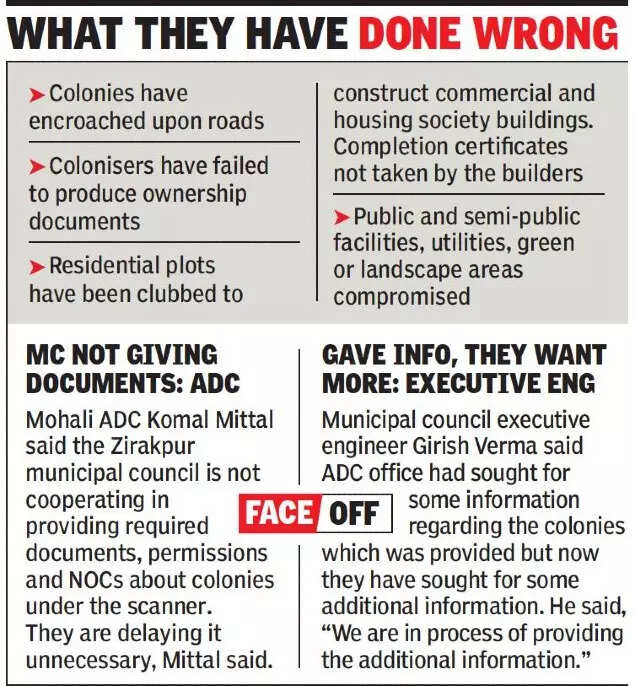 Bolstering the allegations of residents that the municipal council (MC) was deliberately ignoring the violations, Mittal said the MC does not have documentary evidence of ownership and khasra number of the 23 constructions that were already under the scanner. “Zirakpur MC is not cooperating to share documents and permissions to such builders,” Mittal said.