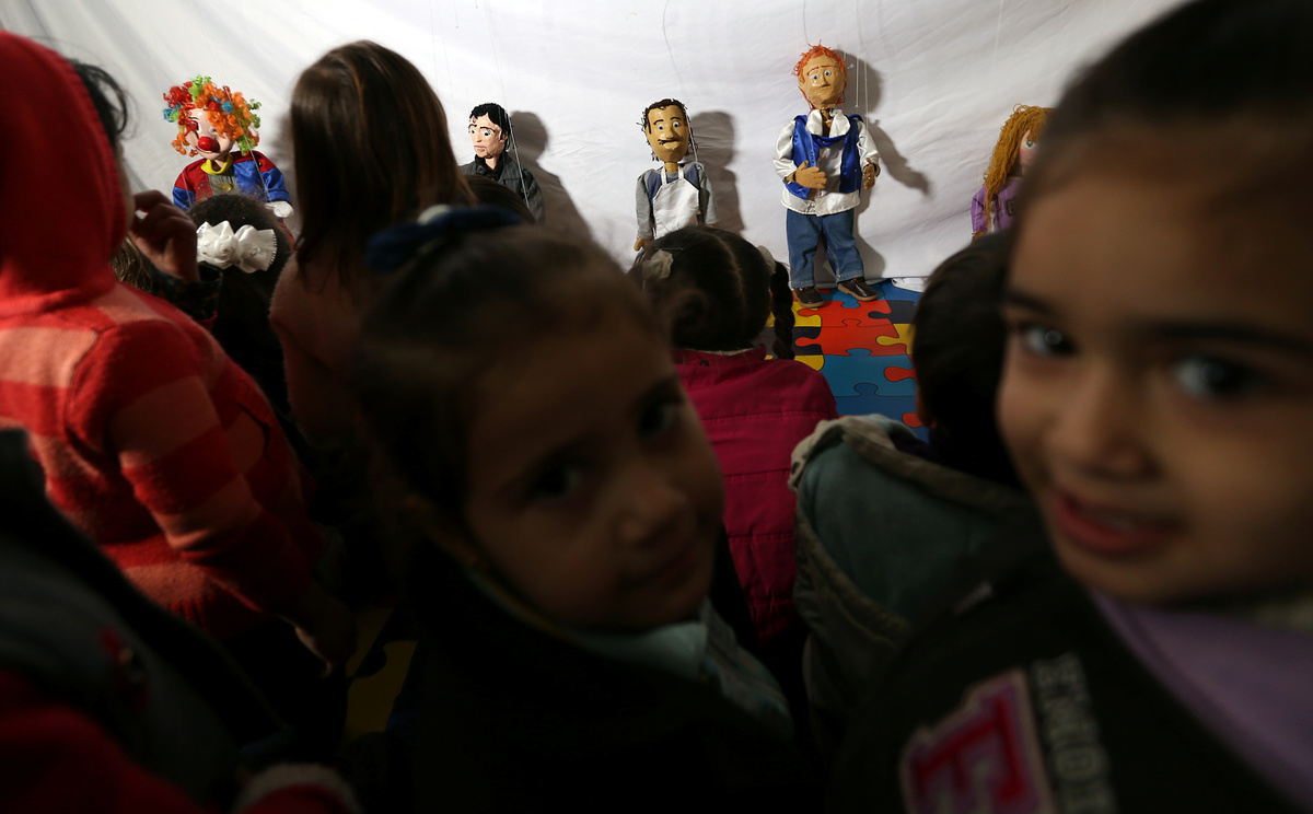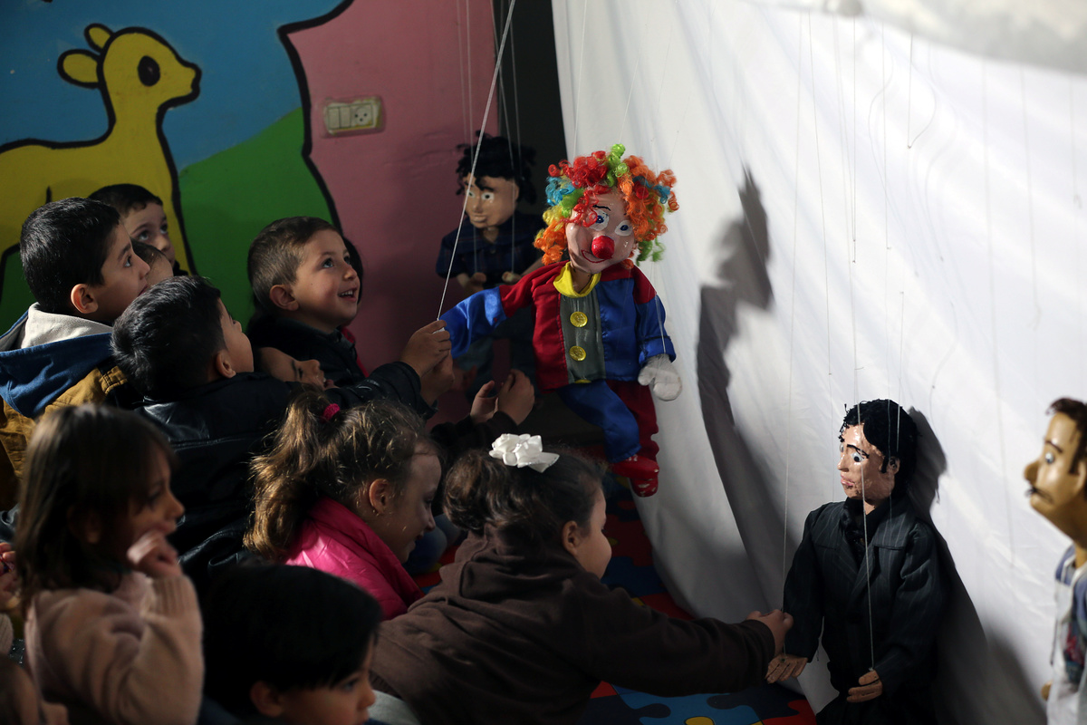 Puppets on a string draw children's smiles in Gaza