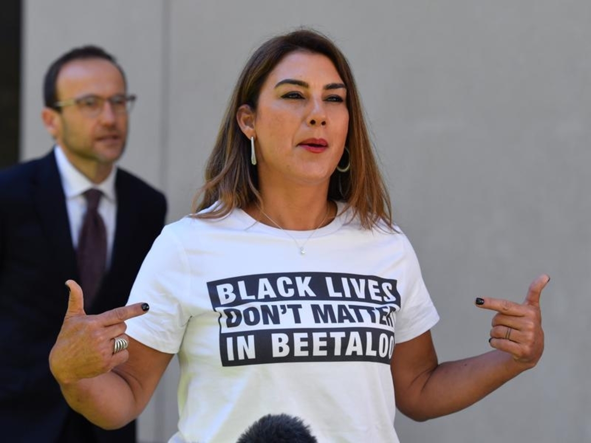 The First Nations senator, who yelled out "black lives don't matter in the Beetaloo" during the debate, was suspended from the upper house chamber after unveiling a shirt with the slogan on it.