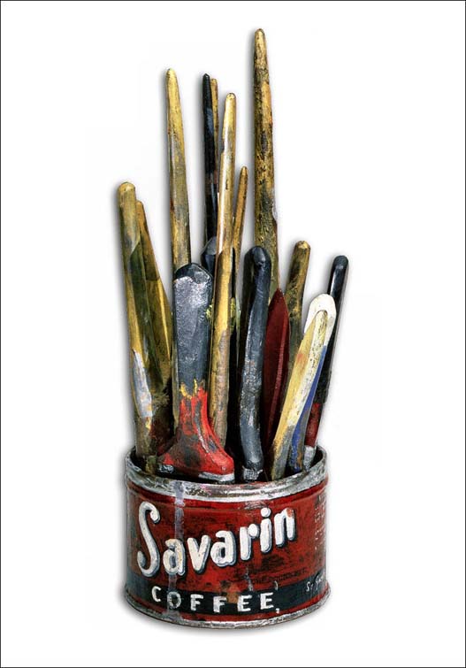 More recently, Jasper Johns made a sculpture of his own brushes in a can and Damien Hirst has sealed an entire studio in a vitrine.